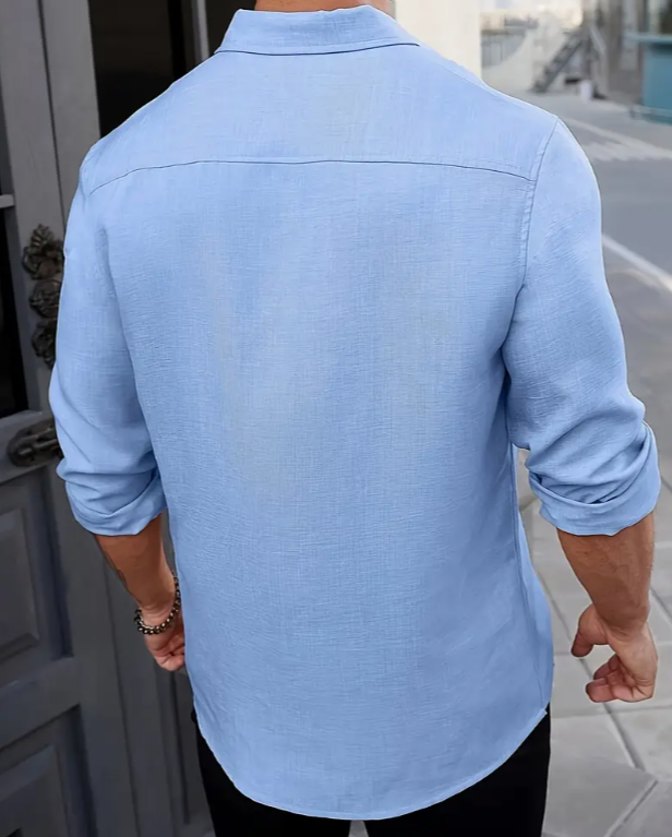 Men’s Classic Solid Color Blue Long Sleeve Shirt